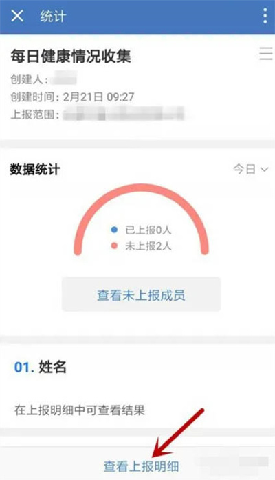 3、完成填写后 → 点击 健康收集 → 查看 上报明细。