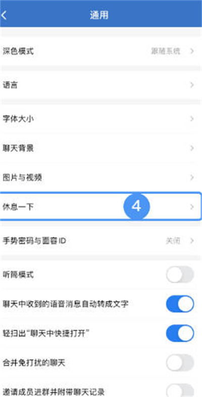 3、进入通用设置后,找到 休息一下 功能并点击进入。