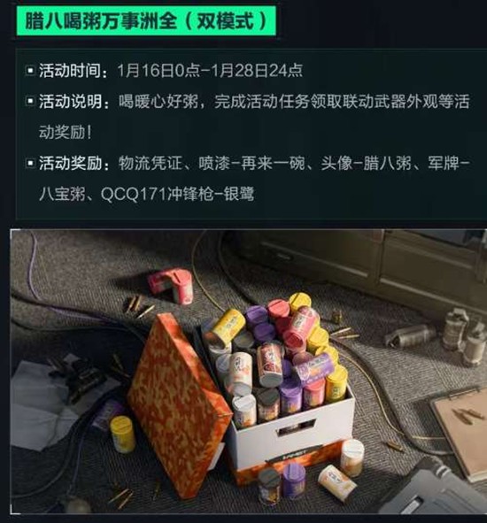 《三角洲行动》腊八节活动快要到来了,很多玩家想要知道腊八节活动福利有哪些呢?我们可以领取到什么奖励呢?值不值得登录完成活动任务,现在就让指玩手游网的小编为大家带来关于《三角洲行动》腊八节活动福利介绍的全部内容吧,感兴趣的小伙伴一定不要错过哦。