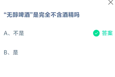 A、不是:正确。无醇啤酒含有微量酒精,通常在 0.5%以下。