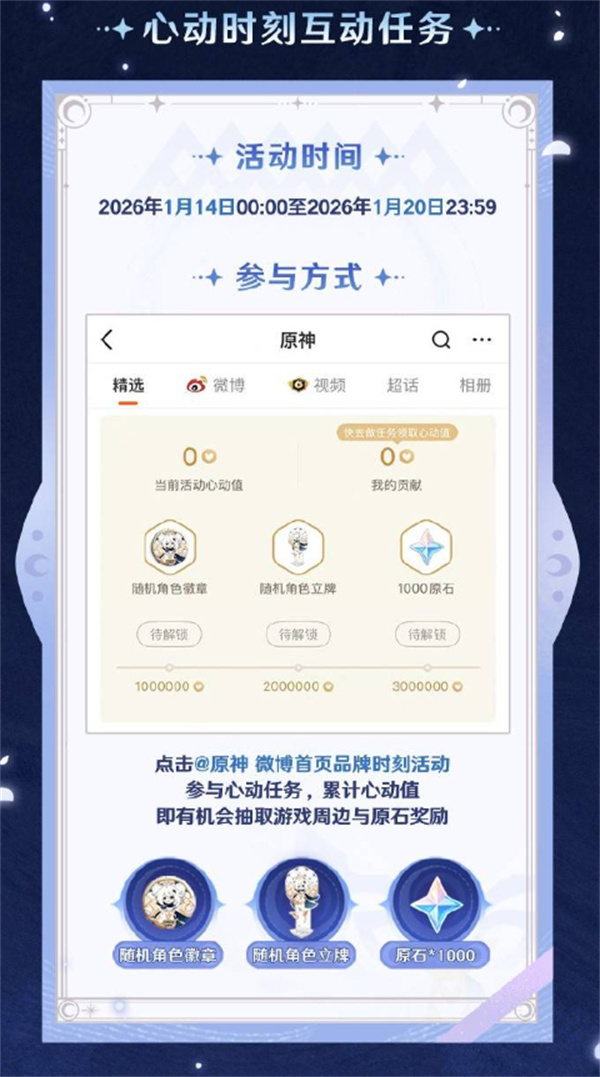 心动时刻互动任务:2026年1月14日 00:00 – 1月20日 23:59