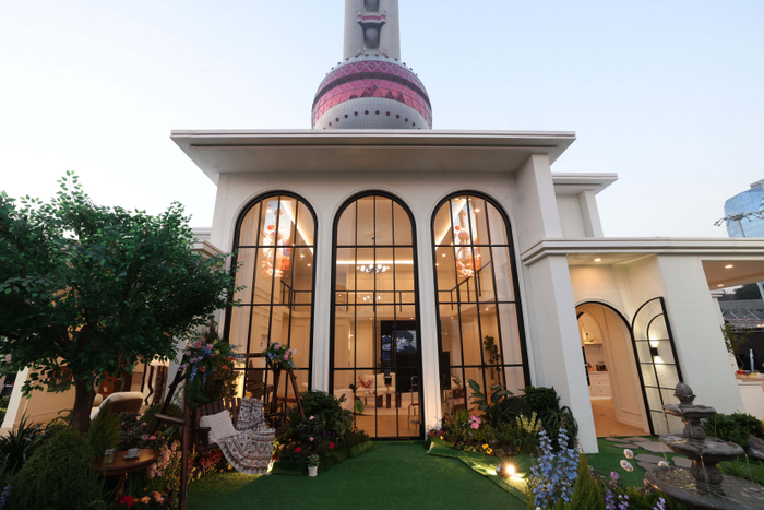 展览现场,一座近6米高的“临空别墅”拔地而起,真实还原了游戏中的家园系统。