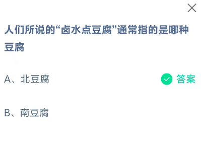 人们所说的"卤水点豆腐"通常指的是哪种豆腐?这是今天《支付宝》每日一题的问题,相信我们很多用户都很想知道这个问题的答案是什么?这么一个可以领取饲料的机会相信我们很多用户都不想错过,这里指玩手游网的小编为你带来了2026《支付宝》1月18日每日一题最新答案介绍(1)的全部内容,喜欢的小伙伴欢迎点击进入看看吧。