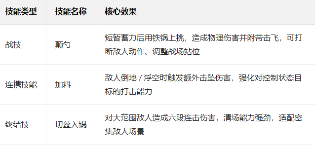基础攻击:采用四连击物理攻击,自带下落攻击与追击机制;对失衡状态敌人攻击效率大幅提升,压制速度更快,适配控场队友,在清群怪、推关卡时优势明显。