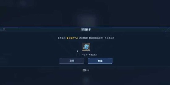 每次制造消耗50量子振芯,从5个心愿插件中随机抽取一个。
