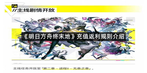 《明日方舟终末地》即将开启公测,很多用户在测试期间进行了充值,然而很多玩家想知道等到了公测,这些充值返利规则是什么呢?那么现在就让指玩手游网的小编为大家带来关于《明日方舟终末地》充值返利规则介绍的全部内容吧,感兴趣的小伙伴一定不要错过哦。