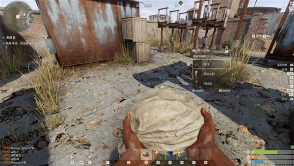 到达前哨站后,找到建筑旁 金属桶,用肥皂敲击 3–5个桶,直至获得针线包。