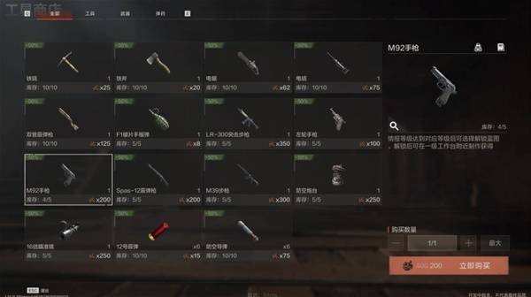 打开武器商店,使用 400废料购买 M92手枪,全程约10分钟即可完成,获取后可反击其他玩家。