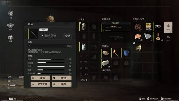 弓箭远程攻击怪物头部伤害高,绷带在血量低于30%时使用。