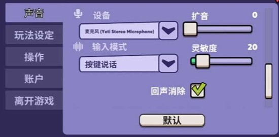 设置语音聊天模式:自由发言 或 按键发言,推荐 按键发言,可避免背景杂音。