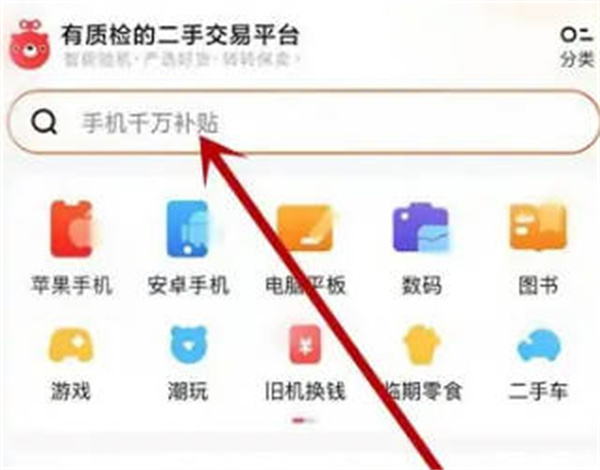 1、我们打开转转之后,点击上方搜索框,输入关键词。