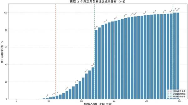 如果想同时收集多个限定角色,消耗的抽数会成倍增加,例如获取 3 个限定角色平均需要约 236 抽。