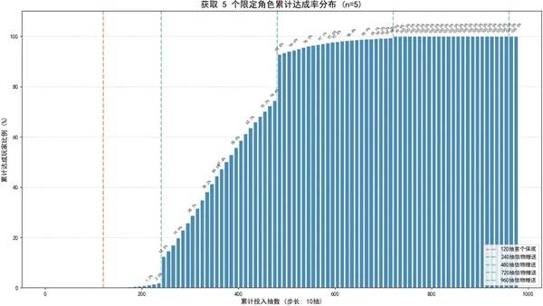 5 个角色:平均 382.1 抽,50% ≤379 抽,75%/90% ≤480 抽,99% ≤682 抽