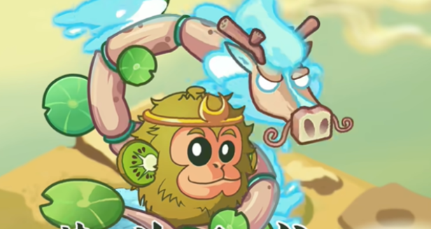 两植物各自独立攻击,白龙攻击力大幅提升,猕猴桃获得神力 buff(提升攻速与攻击力)。