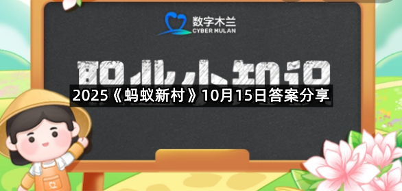 以上就是指玩手游网小编为你带来的2025《蚂蚁新村》10月15日答案分享的全部内容,更多精彩游戏资讯攻略尽在指玩手游网,感兴趣的小伙伴欢迎点击关注收藏本网站哦。