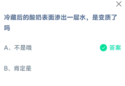 冷藏后的酸奶表面渗出一层水,是变质了吗?这是今天《支付宝》每日一题的问题,相信我们很多用户都很想知道这个问题的答案是什么?这么一个可以领取饲料的机会相信我们很多用户都不想错过,这里指玩手游网的小编为你带来了2026《支付宝》1月28日每日一题最新答案介绍(1)的全部内容,喜欢的小伙伴欢迎点击进入看看吧。