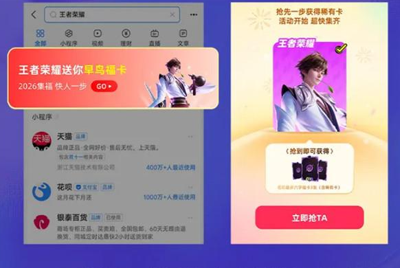 2月3日正式集福开启后,早鸟福卡自动转换为王者荣耀主题福卡,可直接用于 支付宝集五福。