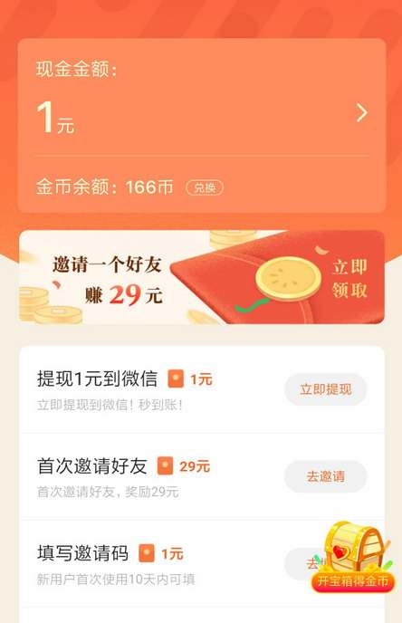 3、当玩家累计金币达到至少 1 元时,就可以兑换现金,1 元也能直接领取。