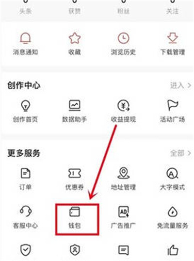 1、打开今日头条,点击右下角“我的”,然后进入“钱包”功能。