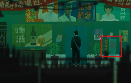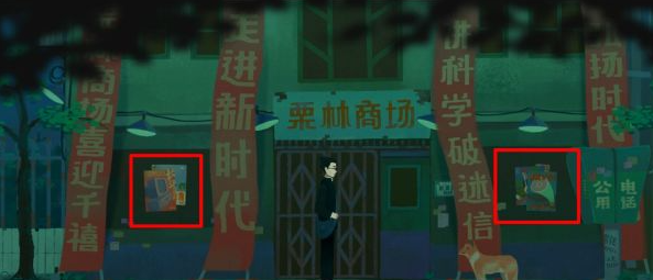 1、调查完四张照片后,切换到徐清源,来到大厅,看到摇摇车旁多了一张可乐的海报。