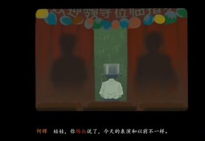 1、进入放映厅后,调查电视,看到何辉、张诚峰和三眼神童在表演前准备工作的对话。