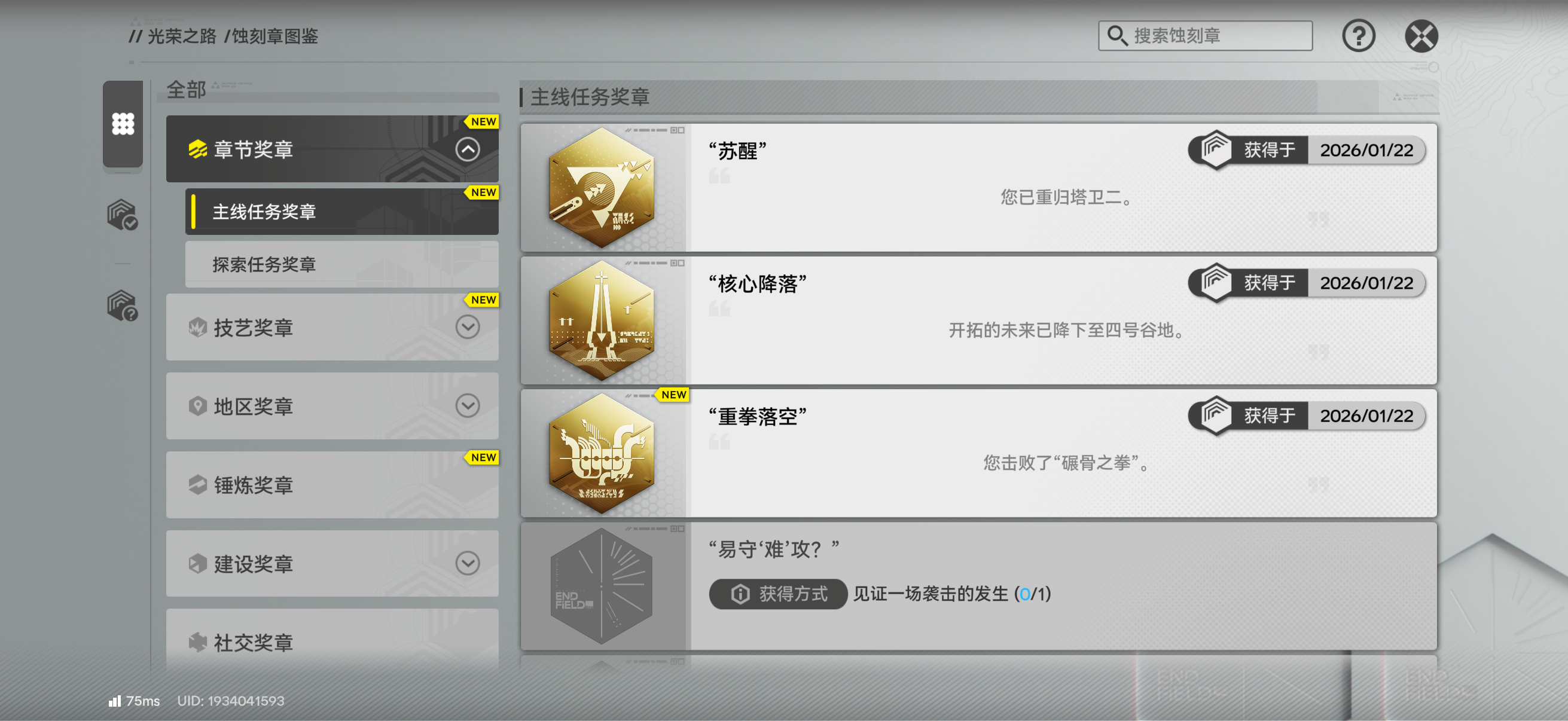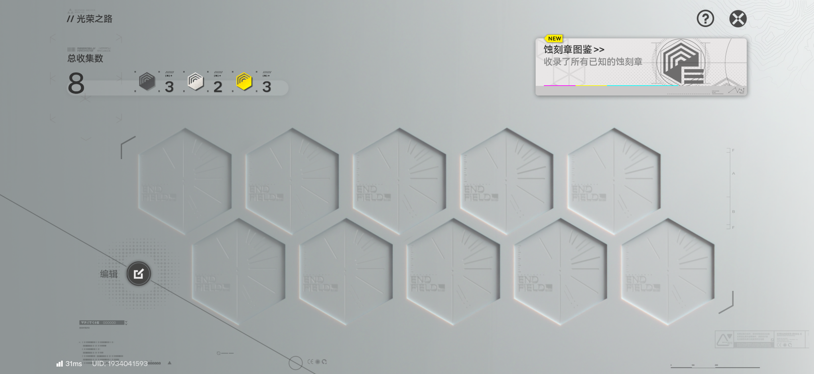 所有蚀刻章可通过主界面右上角【光荣之路】入口查看总览。