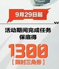 9月29日起:完成高阶任务,保底再得1300张三角券
