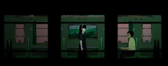 3、画面切换至邱芜,她此刻确实身处火车车厢内。车厢分为左、中、右三节,她所在的是中段车厢。