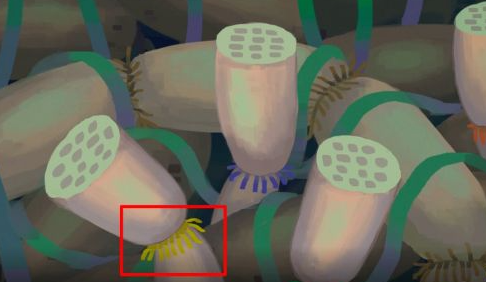 3、按照电话指引观察莲花池底部,多次点击左侧金色莲藕即可找到一张尚未显影的胶片。