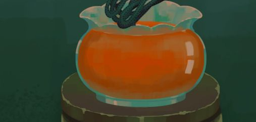 2、回到徐清源处,将刀片放入盛满显影液的鱼缸中,邱芜使用刀片划开金鱼肚子,获得新的胶片,再将胶片放入显影液交给徐清源。