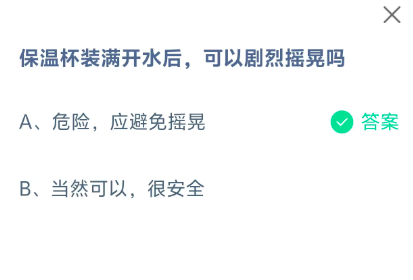保温杯装满开水后,可以剧烈摇晃吗?这是今天《支付宝》每日一题的问题,相信我们很多用户都很想知道这个问题的答案是什么?这么一个可以领取饲料的机会相信我们很多用户都不想错过,这里指玩手游网的小编为你带来了2026《支付宝》2月7日每日一题最新答案介绍(1)的全部内容,喜欢的小伙伴欢迎点击进入看看吧。