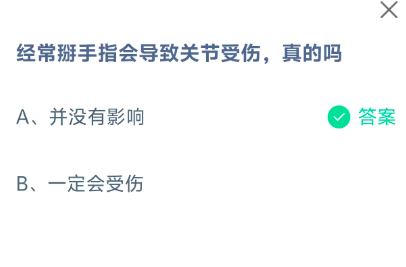 经常掰手指会导致关节受伤,真的吗?这是今天《支付宝》每日一题的问题,相信我们很多用户都很想知道这个问题的答案是什么?这么一个可以领取饲料的机会相信我们很多用户都不想错过,这里指玩手游网的小编为你带来了2026《支付宝》2月10日每日一题最新答案介绍(1)的全部内容,喜欢的小伙伴欢迎点击进入看看吧。