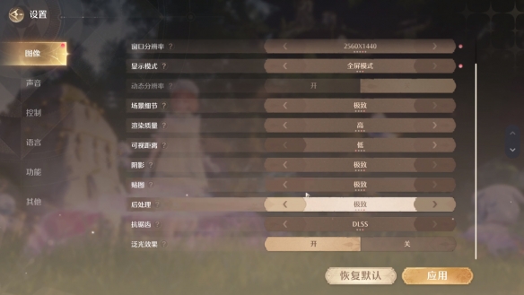 1、进入游戏“设置”-“图像”,将预设选为【极致】。