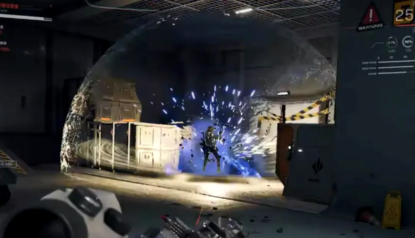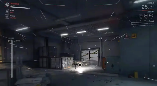 周围出现粒子加速线条,屏幕四周显示宇航服参数。