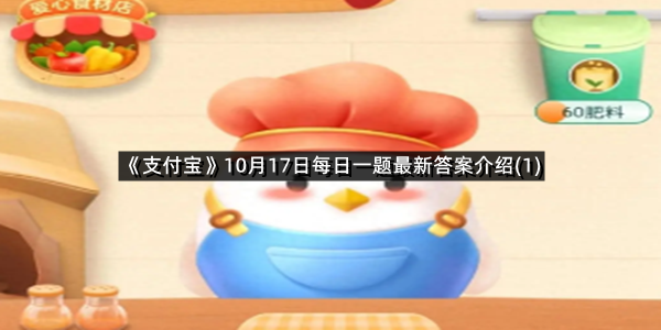 以上就是指玩手游网小编为你带来的《支付宝》10月17日每日一题最新答案介绍(1)的全部内容,更多精彩游戏资讯攻略尽在指玩手游网,感兴趣的小伙伴欢迎点击关注收藏本网站哦。