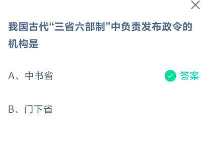 我国古代“三省六部制”中负责发布政令的机构是?是今天《支付宝》每日一题的问题,相信我们很多用户都很想知道这个问题的答案是什么?这么一个可以领取饲料的机会相信我们很多用户都不想错过,这里指玩手游网的小编为你带来了2026《支付宝》2月11日每日一题最新答案介绍(2)的全部内容,喜欢的小伙伴欢迎点击进入看看吧。