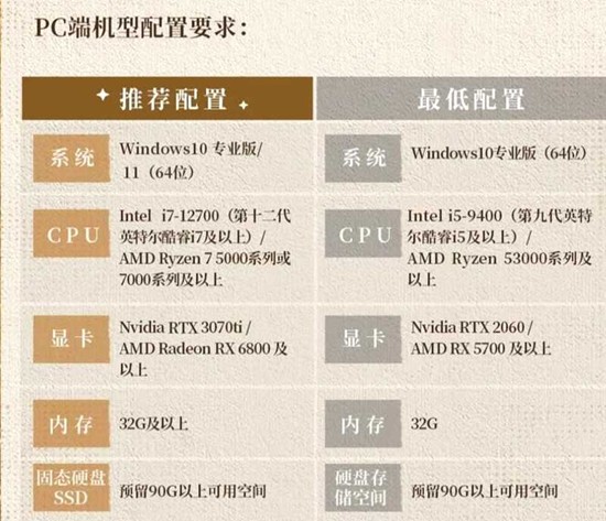 PC端推荐配置(全高画质)