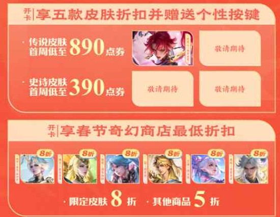 开卡福利:2月16日23:59前开卡可额外获得好礼,最高可得传说皮肤;先买皮肤再开卡可返差价,点券自动到账