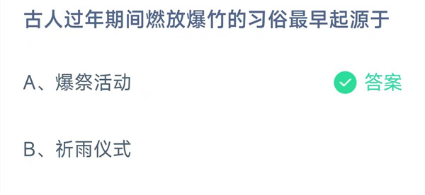 古人过年期间燃放爆竹的习俗最早起源于?是今天《支付宝》每日一题的问题,相信我们很多用户都很想知道这个问题的答案是什么?这么一个可以领取饲料的机会相信我们很多用户都不想错过,这里指玩手游网的小编为你带来了2026《支付宝》2月15日每日一题最新答案介绍(2)的全部内容,喜欢的小伙伴欢迎点击进入看看吧。