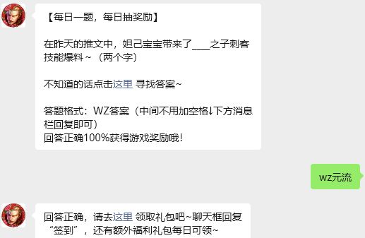 今日问题:在昨天的推文中,妲己宝宝带来了____之子刺客技能爆料~(两个字)