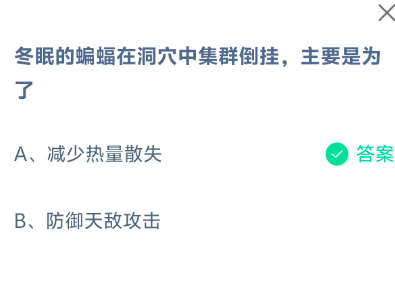 冬眠的蝙蝠在洞穴中集群倒挂,主要是为了?这是今天《支付宝》每日一题的问题,相信我们很多用户都很想知道这个问题的答案是什么?这么一个可以领取饲料的机会相信我们很多用户都不想错过,这里指玩手游网的小编为你带来了2026《支付宝》2月28日每日一题最新答案介绍(1)的全部内容,喜欢的小伙伴欢迎点击进入看看吧。