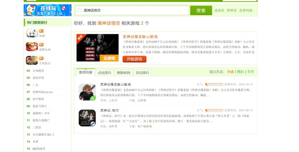 2、进入官网后,我们搜索【黑神话悟空】