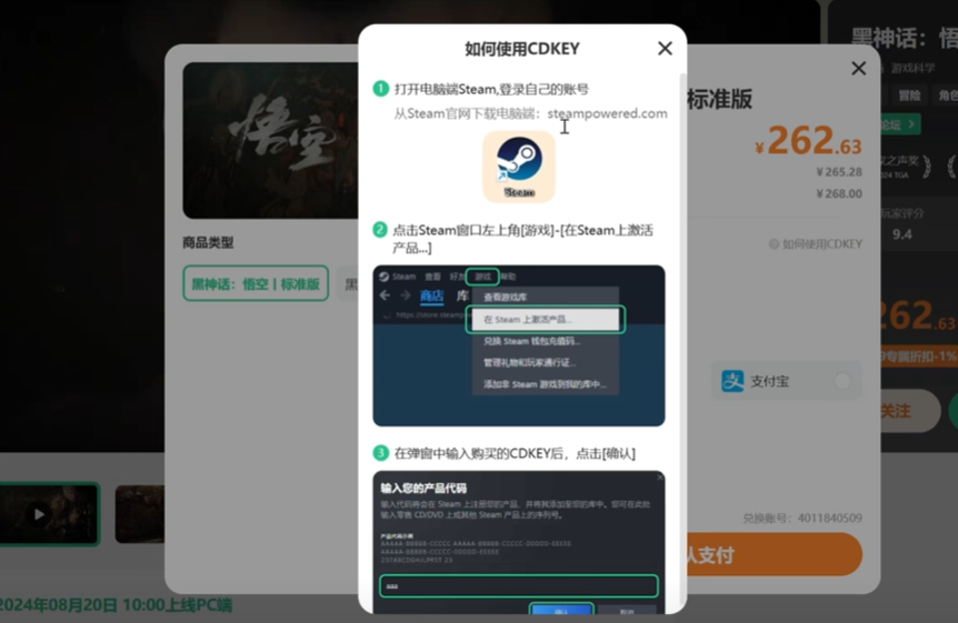 4、点击发货方式后面的 如何使用CDKEY。