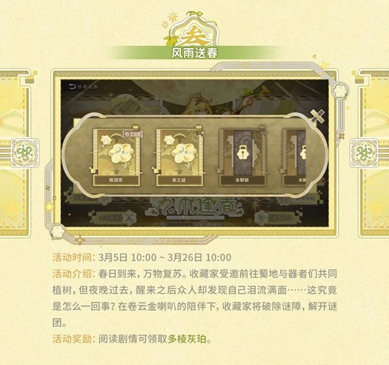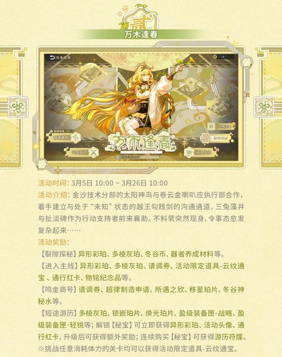 以上就是指玩手游网小编为你带来的《物华弥新》万木逢春3月5日正式开启的全部内容,更多精彩游戏攻略资讯尽在指玩手游网,感兴趣的小伙伴欢迎点击关注收藏本网站哦。