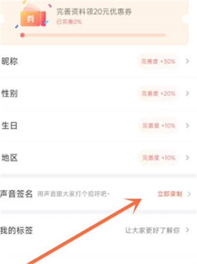 3、进入声音签名:在资料页,点 声音签名。