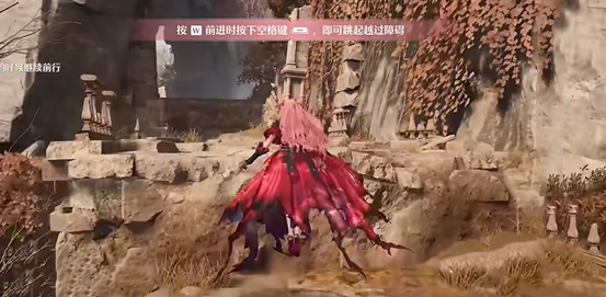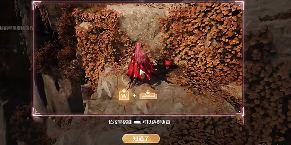 4、继续前进,在指定位置长按跳跃键到达高处平台。