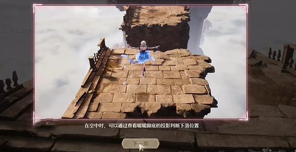 3、来到断崖处,连续点击两次触发漂浮套装,飘到前方安全区域。