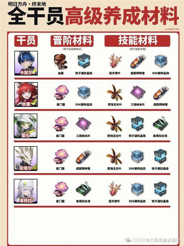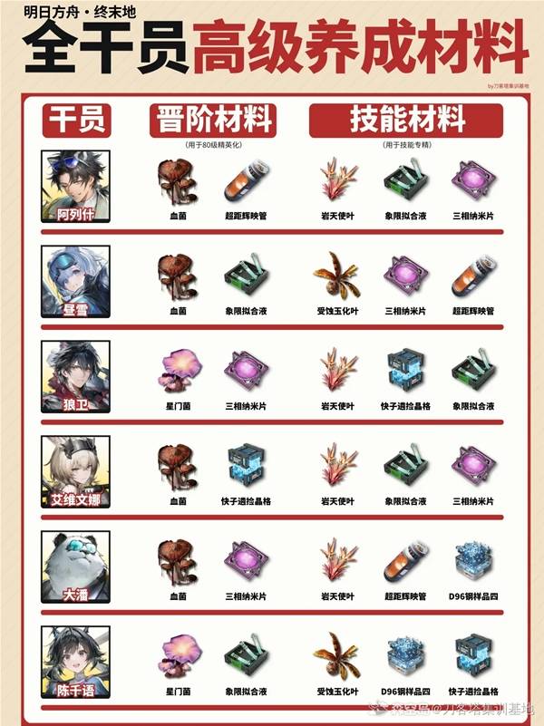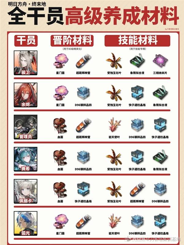 以上就是指玩手游网小编为你带来的《明日方舟终末地》 全干员高级材料需求表的全部内容,更多精彩游戏攻略资讯尽在指玩手游网,感兴趣的小伙伴欢迎点击关注收藏本网站哦。