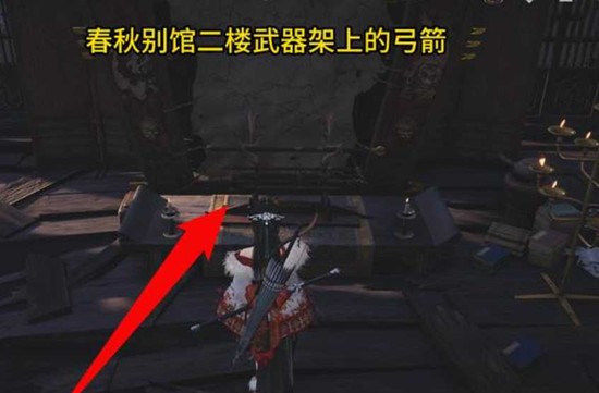 获取装备:前往春秋别馆 → 主建筑二楼大堂,在桌子上拾取 悬剑·碎纹雕弓。