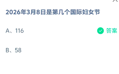 解释:从 1911 年算起,到 2026 年正好是第 116 个国际妇女节。
